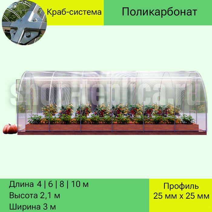 Краб-система соединяет несущие арки и поперечные стяжки. Благодаря такому креплению поликарбонат укладывается одновременно на арку и стяжку. Уникальная краб-система используется для повышения прочности конструкции. А также для увеличения пространства соединения покрытия с конструкцией, что делает данный метод надёжным и практичным решением.